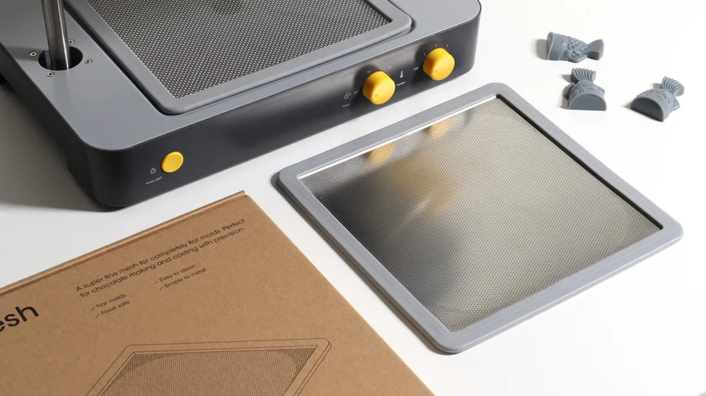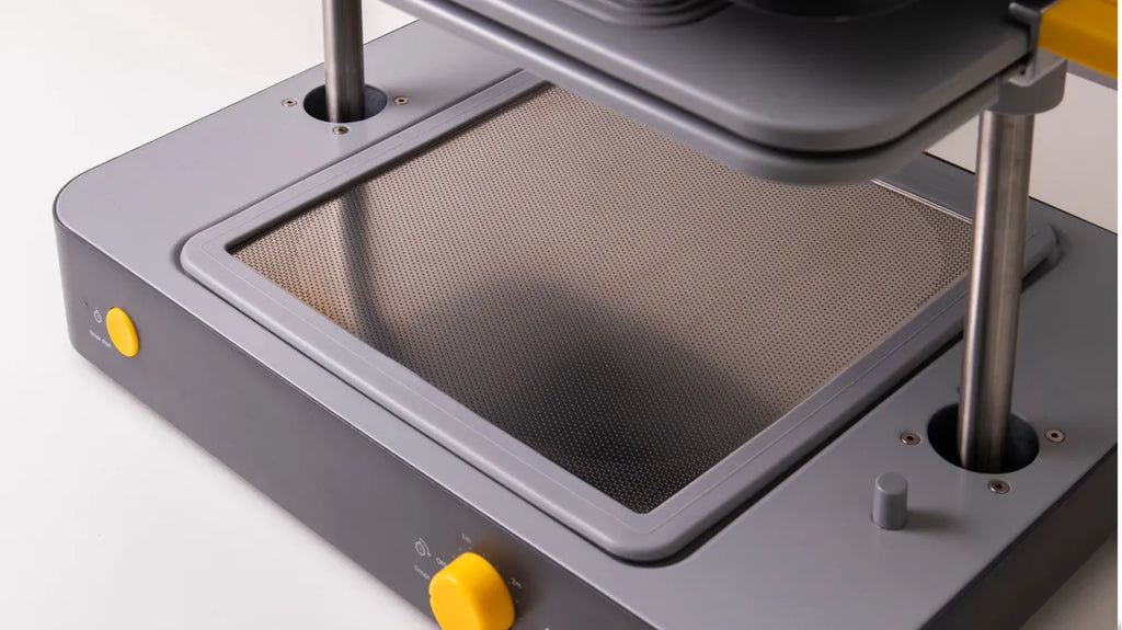 The Pro Mesh is a super-fine metal bed accessory for the FormBox. It is made from 1.2mm stainless steel, which has been etched with 1000’s of tiny holes to let more air escape from around the forms that you are vacuum forming. The Pro Mesh upgrades the standard mesh bed in your FormBox allowing for smoother edges for cleaner, tighter molds and parts.