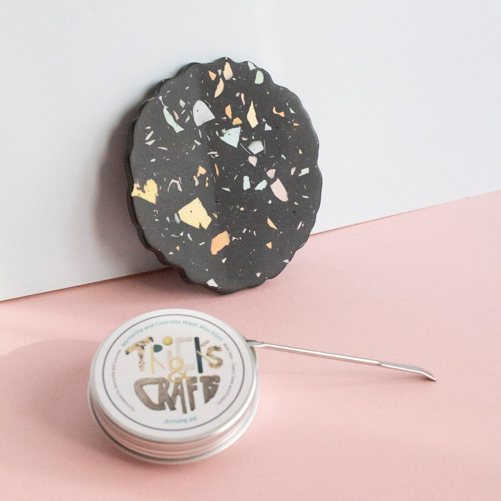 Tricks and Crafts wash wax is a great product to make you quickly forget about the long sanding and reminding you of how beautiful your Jesmonite and concrete pieces are.