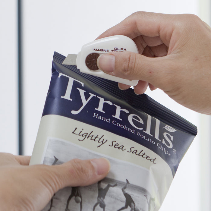 The OLFA Magnetic Touch Knife is a multi-purpose pocket-sized cutter ideal to open packages and use in arts, crafts, graphics and hobbies.